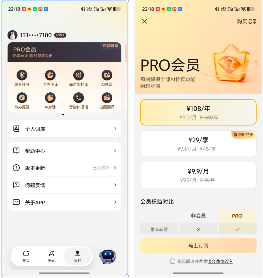 但重点划重点:这些 AI 翻译功能并非终身免费!官方虽标注 “买耳机送 Pro 会员”,但实际是限时活动,后续会员是否收费、收费标准如何,目前暂无明确说明,这也是这款耳机最让人介意的地方。而且 AI 翻译在处理专业术语时会拉胯,比如跨境电商、金融等领域的专业词汇,翻译会很笼统,精准度不足,专业跨境沟通还得靠专业翻译工具,它只能满足基础需求。