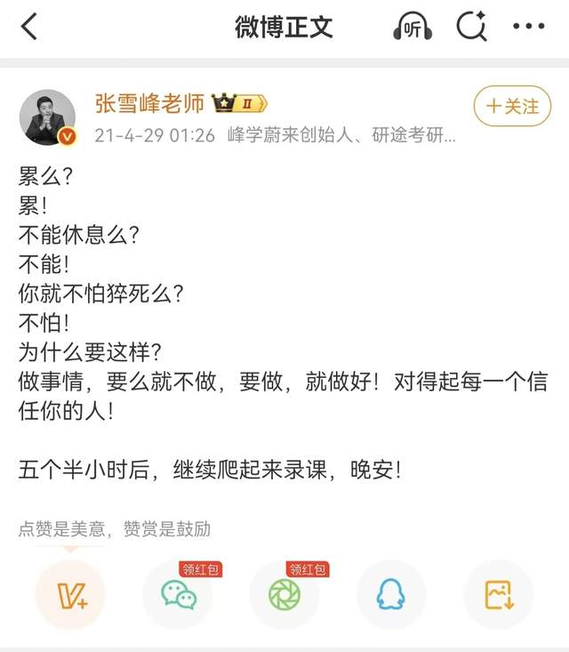 从商业上讲,张雪峰是成功的,从健康上讲,张雪峰又是失败的。