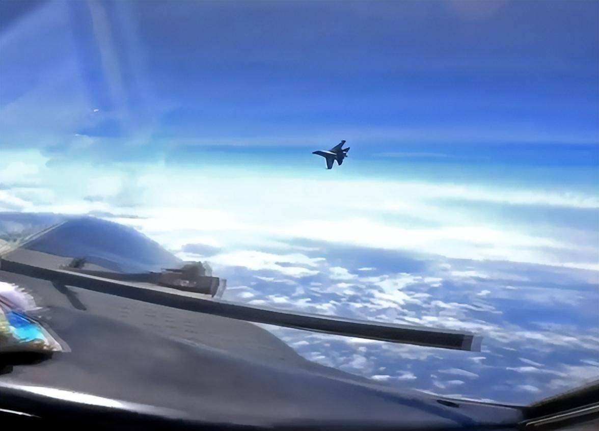 2023年5月26日在南海某空域,美军故意派遣一架RC-135侦察机入侵中国的军事训练区抵近侦察。为此,中国空军派遣一架歼16战机前往驱离和监视,但面对中国战机的警告,美军依旧我行我素,不改变航行。面对这一情形,歼16飞行员在伴飞途中突然加速超过对方并从前方斜飞而过,巨大的尾流使得RC-135侦察机剧烈颠簸,迫使RC-135侦察机离开相关空域。
