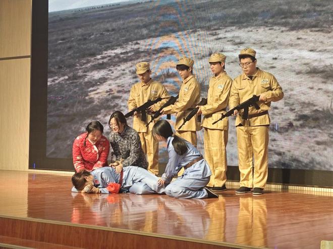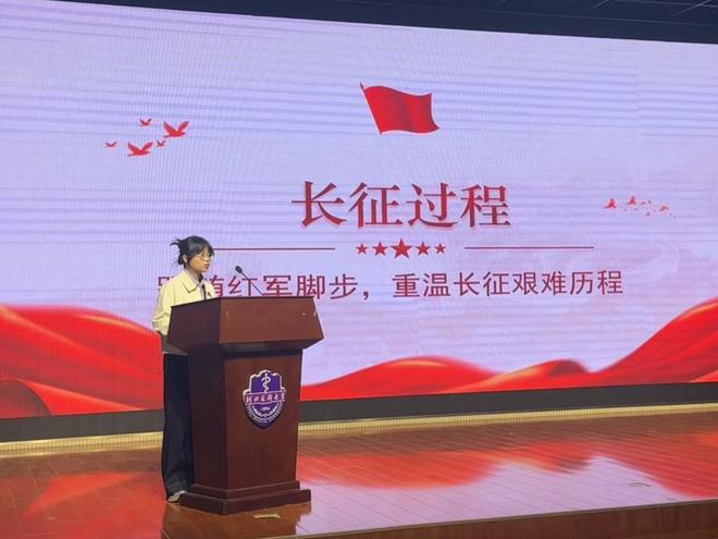 在室内环节中,3名同学依次登台,系统讲解长征精神的历史背景、发展历程与核心内涵,为现场学子筑牢理论根基。随后,由师生自编自导自演的话剧《风雪巾帼行》温情上演,同学们以真挚的情感、生动的演绎,再现了烽火岁月中长征战士坚守信仰、不畏艰险、团结互助的感人场景,让在场观众跨越时空感受到革命先辈的崇高精神。