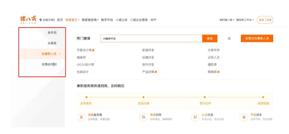 猪八戒网与云队友类似,用户既可以作为雇主(甲方),也可以作为服务提供者(兼职者)。该平台已运营十余年,具有一定的信誉度。