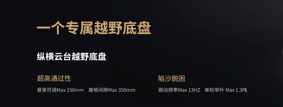 作为电四驱越野车,该车后轮并不是通过中央传动轴+差速器提供动力,而是直接在后桥加装了一台P4电机直接驱动后轮,且最大功率达到了300kW,且后电机输出端也支持两挡调速,配合14种越野模式,能智能适应各种地形场景。
