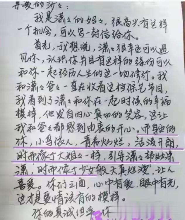 孙丞潇的妈妈也用一封手写信,来肯定并承认了这段感情,送上了满满的祝福。