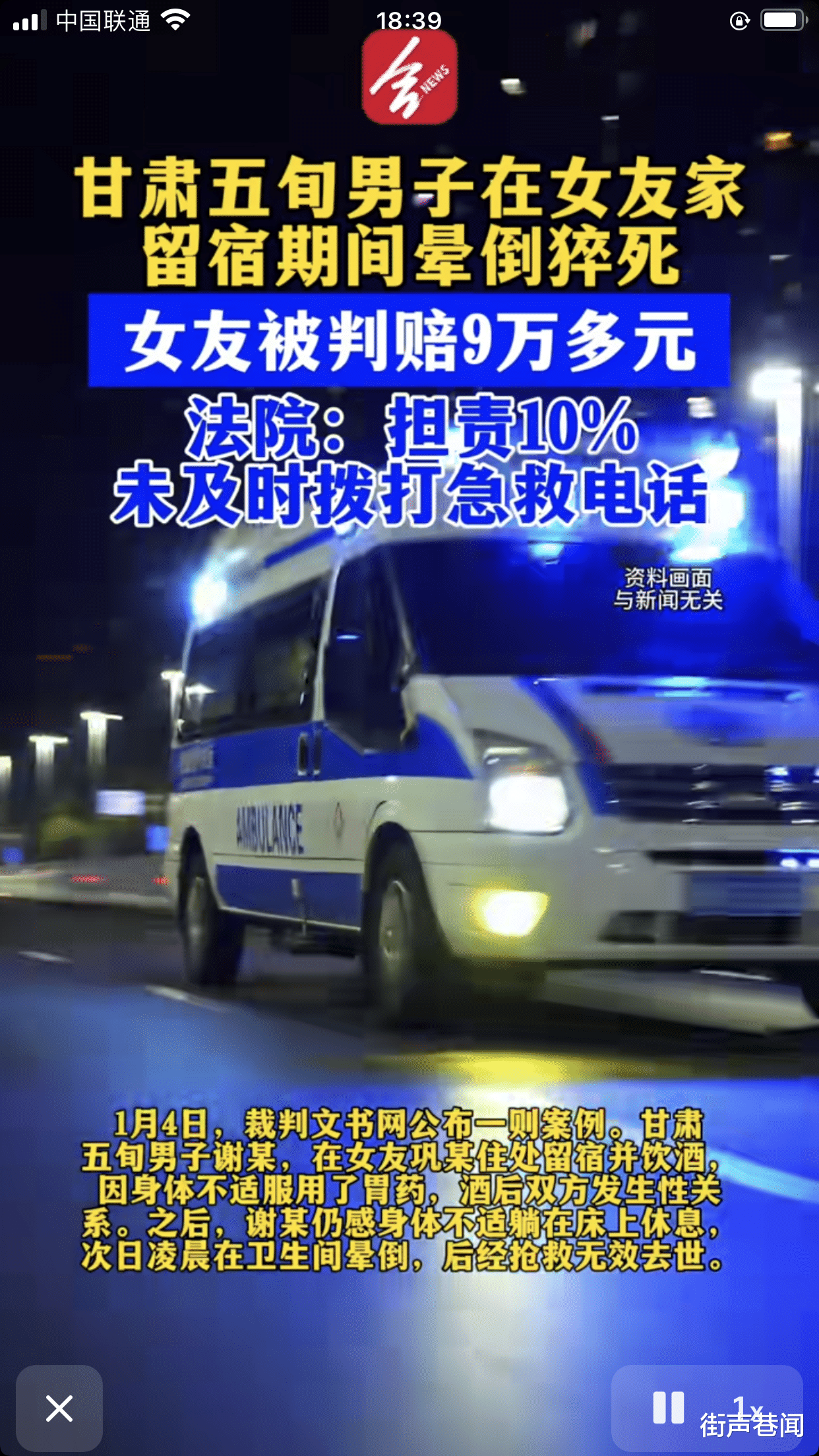 甘肃天水,50岁的男子在女友家中留宿,半夜在卫生间晕倒,女友赶紧叫人把男子送到医院,结果医治无效去世。随后,男子家人将女友起诉到法院,要求赔偿18.7万元。