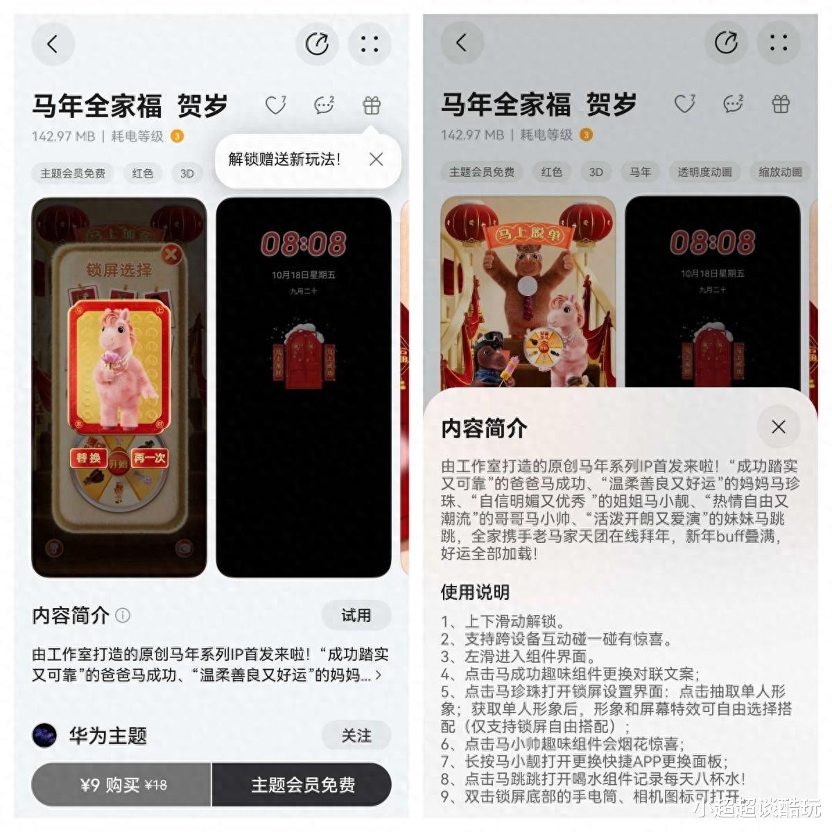 值得一提的是,春节的华为主题会员折扣力度也很大,主题会员年卡低至4.9折,表盘会员年卡5.9折。不仅能随意使用各种风格的百变卡片和耳机弹窗,还有机会参与实物豪礼抽奖和限时回归的惊喜盲盒。