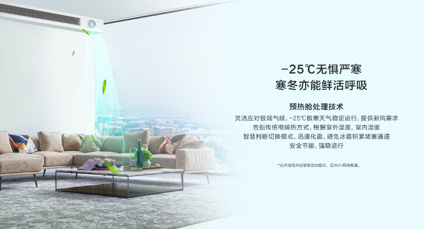 遇到恶劣天气,无法开窗通风,室内空气就会变得沉闷。此时,海信中央空调新风室内机便是你的最佳选择。它不受天气影响,持续为室内输送清新空气。通过新风实时通风换气,快速排出室内污浊空气,引入洁净鲜氧,让室内始终保持空气清新。