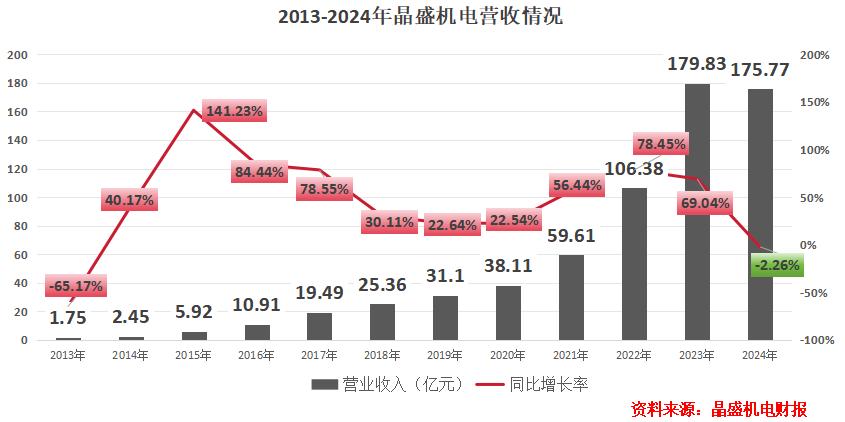 2013-2023年,公司营收从1.75亿元增长到近180亿元,连续10年同比增长。可在2023年年末,光伏产业链主要产品(硅片、电池片)开始供给过剩,厂商纷纷减产,给晶盛机电带来直接冲击。
