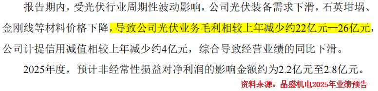 两股力量造成公司业绩下滑,2025年其光伏业务毛利减少了22亿元-26亿元。