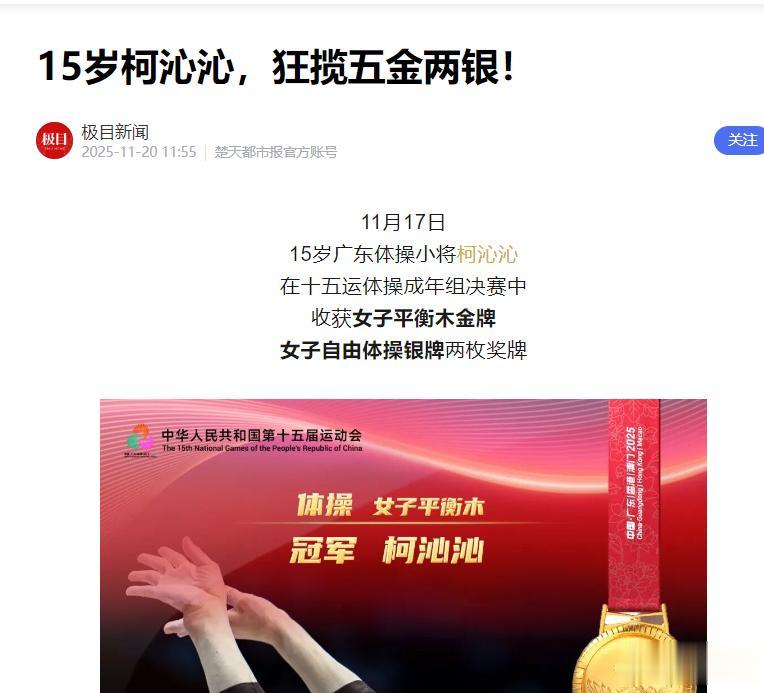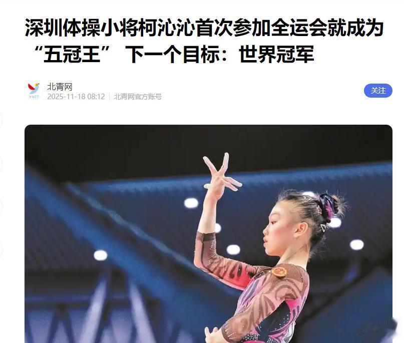 信息来源:深圳体操小将柯沁沁首次参加全运会就成为“五冠王” 下一个目标:世界冠军