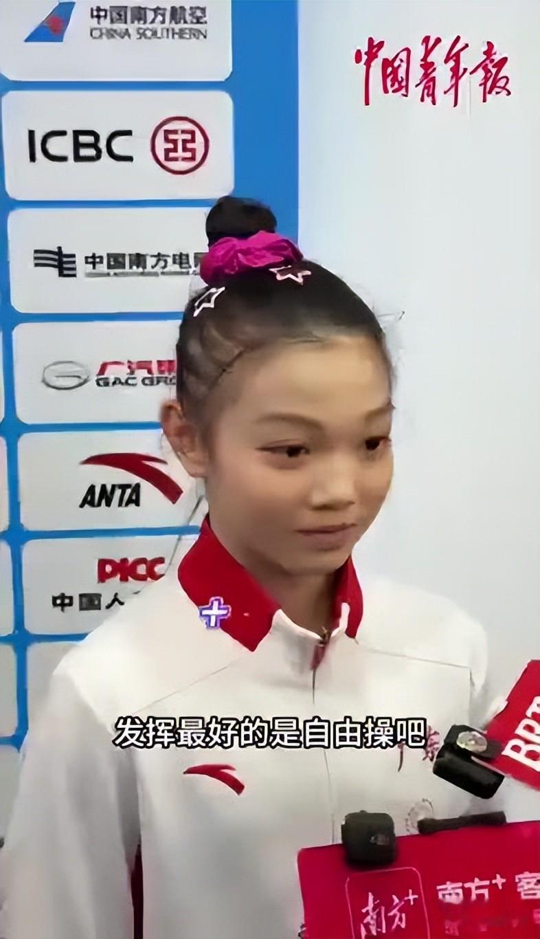 平衡木项目她拿了14.3分,是全场这个项目的最高分,下来后她没怪任何人,只是跟队友说“下次我们再赢回来”,特别有担当。