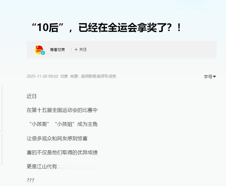 信息来源:“10后”,已经在全运会拿奖了?!