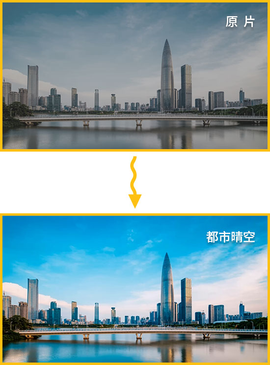 拍都市街景?“都市晴空调色”让天空更蓝、建筑更有质感。