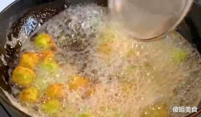 丸子刚下锅时不要急着翻动,等它定型后再用筷子轻轻拨动,让丸子受热均匀,看到丸子表面变成金黄色,漂在油面上时,就可以捞出来控油了。