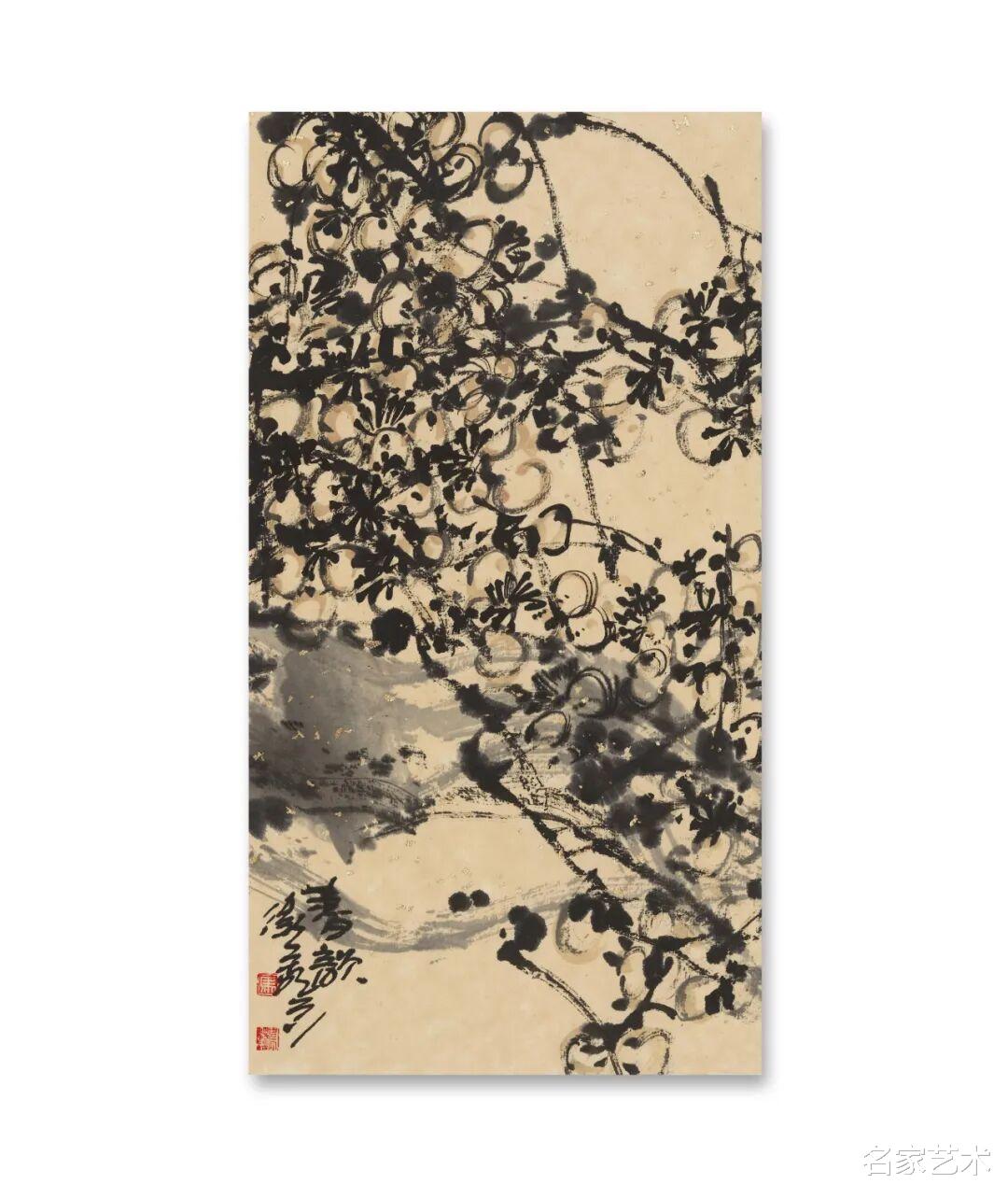 马卫巍的大写意花鸟画,首先打动观者的是那奔放不羁而又精准传神的笔墨语言。他的用笔,既有金戈铁马的豪迈气势,又有春风拂柳的细腻柔情。在他的笔下,一枝老梅的枝干可以苍劲如铁,几朵花瓣却柔美似水;一只寒雀的形体可以简约到近乎抽象,眼神却灵动如生。这种对笔墨的高度掌控力,源于他数十年来对传统的深入研习与理解。作为美术教育家与理论家,他对中国画笔墨体系的认知不是碎片化的、表面的,而是系统的、本体的。他深知,笔墨之于中国画,非仅造型手段,更是精神载体。在他的小品中,每一笔都不仅是形态的构建,更是气韵的流转,是画家心绪的直接流露。