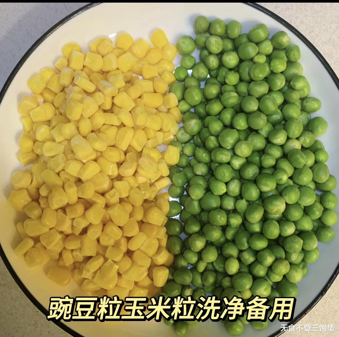 接下来是处理食材。青豆和胡萝卜丁比较硬,建议先焯水1-2分钟,捞出沥干。这样炒的时候能快速成熟,保持色泽鲜亮。玉米粒如果是罐头的,记得沥干水分,否则炒的时候会出水,影响口感。所有食材准备好后,就可以开始烹饪了。