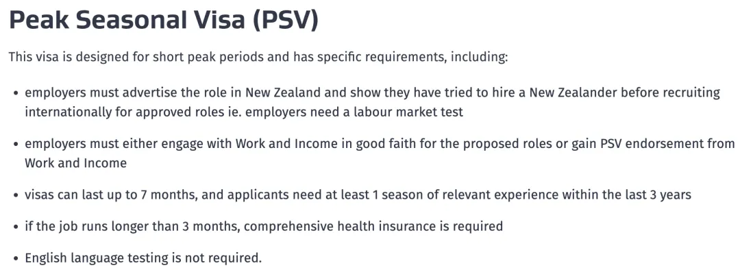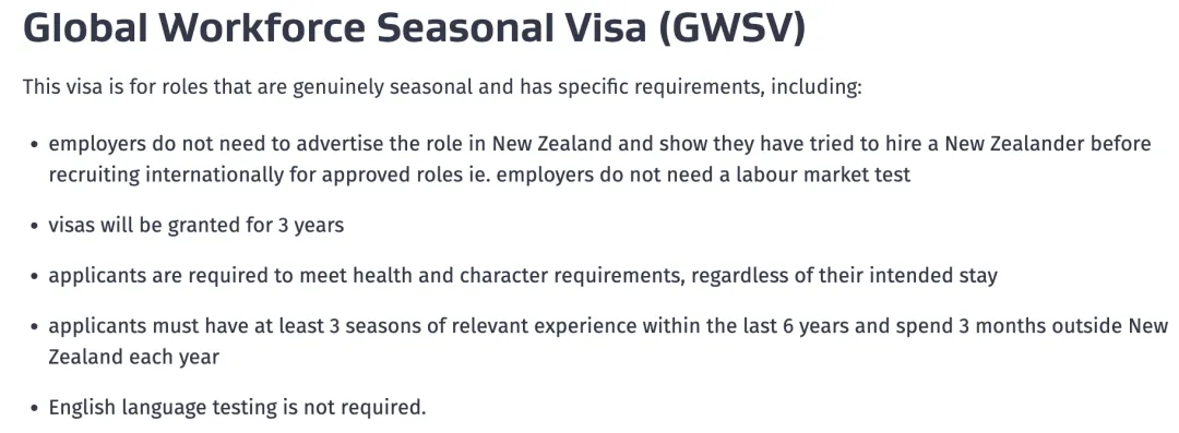 自2025年12月8日起,新西兰一名居将开放“认证雇主工作签证(AEWV)”框架下的两项新季节性签证选项的申请,即“全球劳动力季节性签证(GWSV)”和“旺季季节性签证(PSV)”,以解决季节性用工短缺问题。
