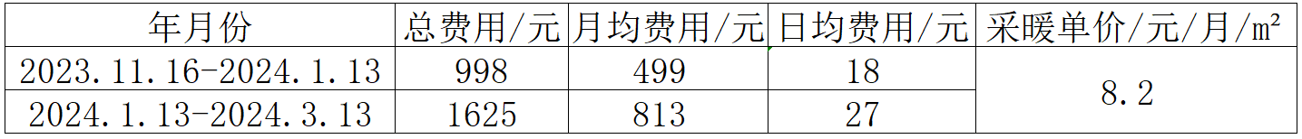 2023年-2024年采暖季:采暖季费用:
