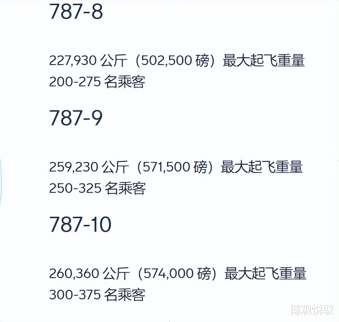 787-9(259230公斤):250-325座,航程与787-8相近但载客量更高,是航空公司拓展新兴市场的主力;