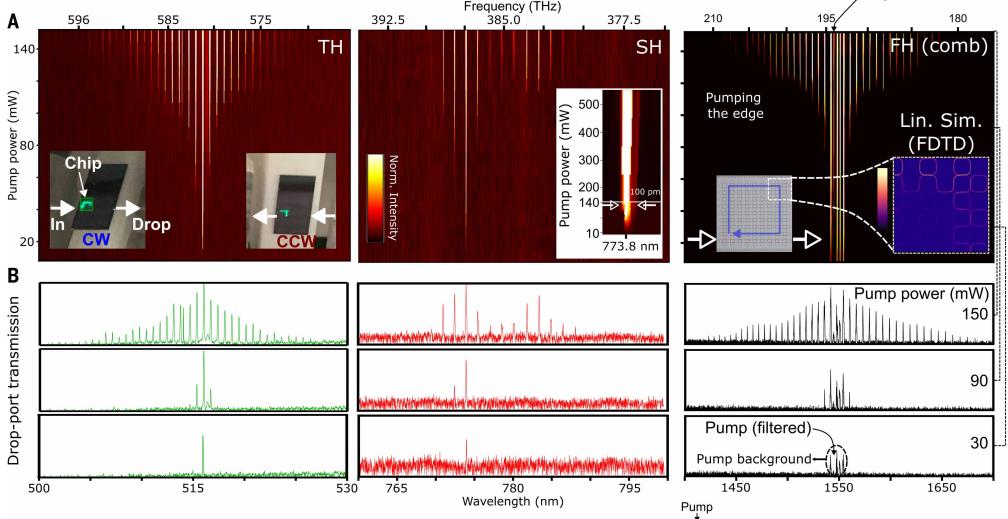 这意味着,从一束看不见的红外光开始,这块小小的芯片在不需要任何外部帮助的被动情况下就产生了一场横跨两个八度的光谱交响乐。