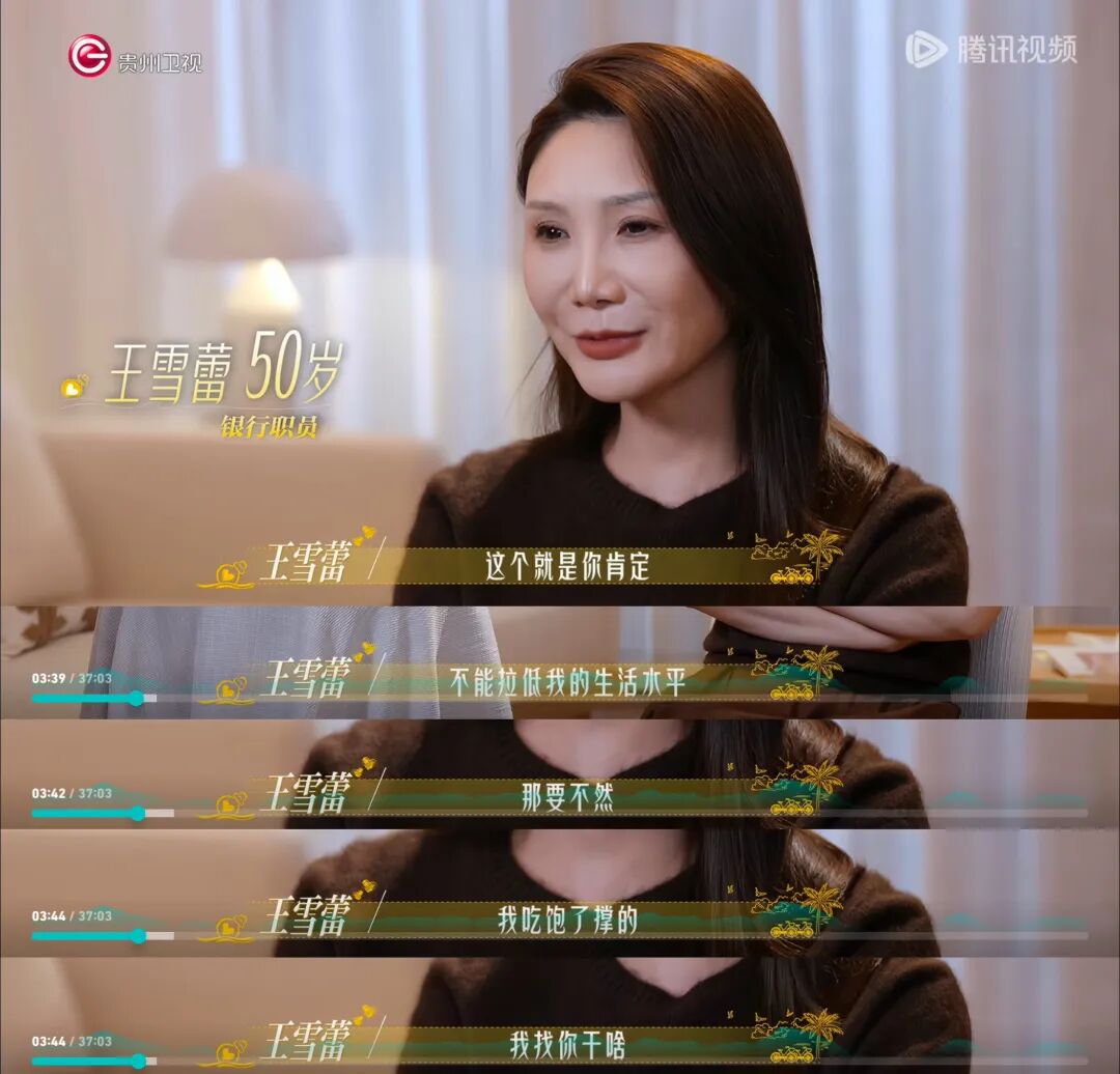 这是很多观众在看中老年恋综《日落时分说爱你》时的感受。相较以往聚焦中老年婚恋的老式相亲节目,《日落时分》借鉴了年轻人恋综的浪漫叙事。不过,即便有从大理到泰国的旅居氛围、各种充满粉红泡泡的约会场景,这群50+哥姐们的恋爱日常,也不完全局限于甜腻浪漫的理想化一面,而是呈现出更多阅尽千帆后的直球交锋和现实考量,贡献了不少“抓马”名场面。