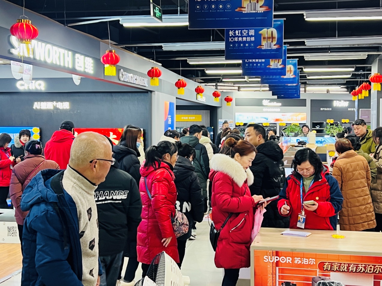对情感型年货的需求,不仅体现在品类选择上,更强调“及时拥有”——希望能在年前送达并安装好,确保春节期间派上用场。为满足即时可得的期待,苏宁易购零售云依托全国超万家深入县镇的门店,积极推进年货节,联合主流家电品牌加码补贴,还将“新春年货大集”直接办到县域居民的家门口。消费者可以享受热闹的演出和年味小吃,也能便捷地以旧换新,让升级后的家电及时进入家门。