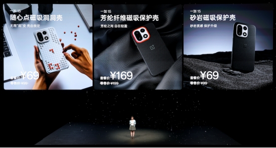 本次发布会上,一加也带来多质感与实用性兼具的配件产品。一加无限探索双肩包,售价 299 元;一加 15 系列随心点磁吸洞洞壳,售价 69 元;一加 15 系列芳纶纤维磁吸保护壳,售价 169 元;一加 15 系列砂岩磁吸保护壳,售价 69 元;150W 超能核超级闪充移动电源,售价 299 元。