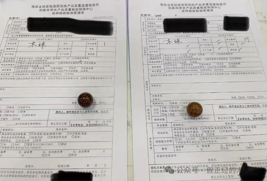 笔者确认其木种非黄花梨后,经许可,将材料送至省检验检测研究中心进行专业检测,并出具带有完备法律效力的专业检测报告;