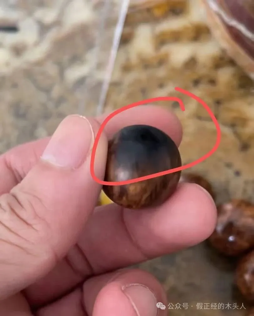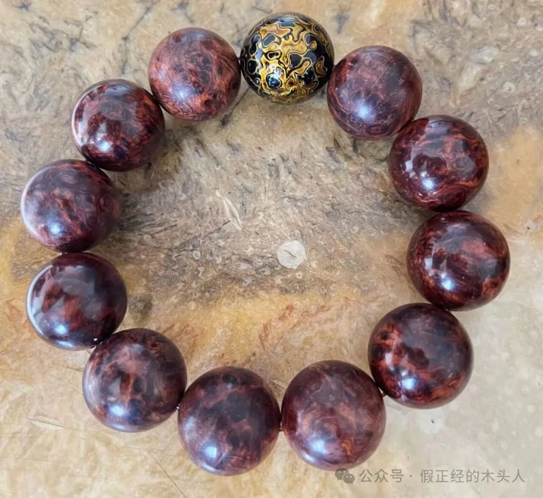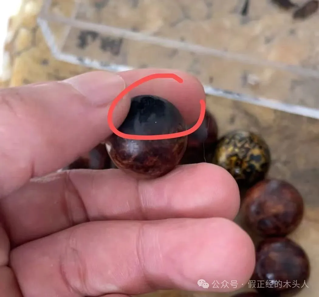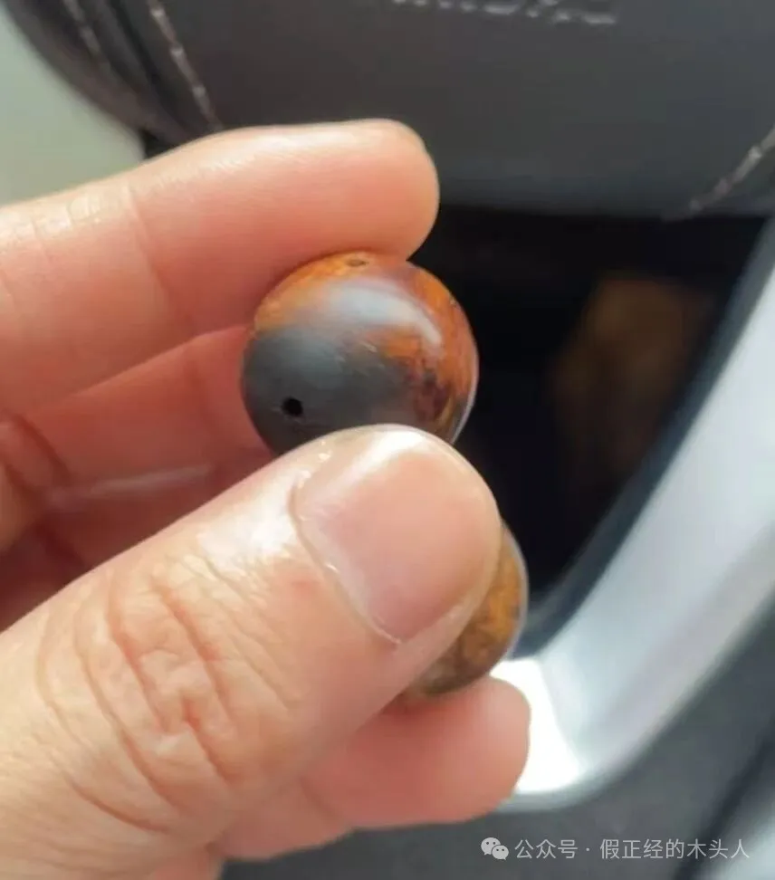 笔者通过图片及周边因素(购买价格、地区、年份、客户与卖家具体聊天内容)等判定两条手串不属于黄花梨(海南、越南黄花梨),应是别的木种;