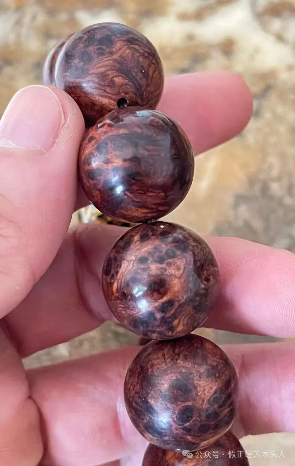 (图示一的手串纹理,倒是有实感的,但其余特征不符。)