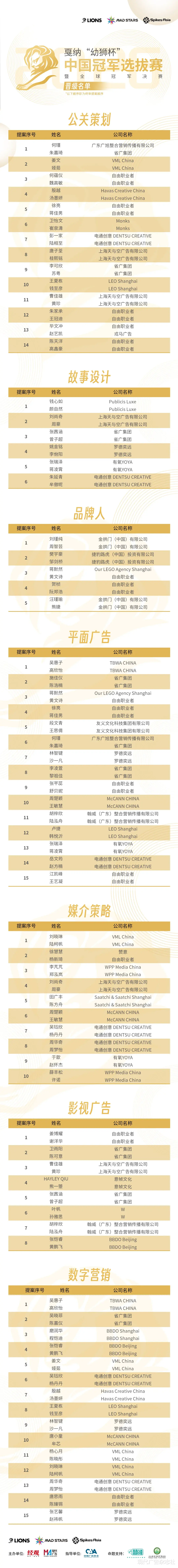 经过激烈的角逐和层层筛选,2026戛纳“幼狮杯”中国冠军选拔赛晋级名单揭晓,名单公布顺序即为终审提案顺序: