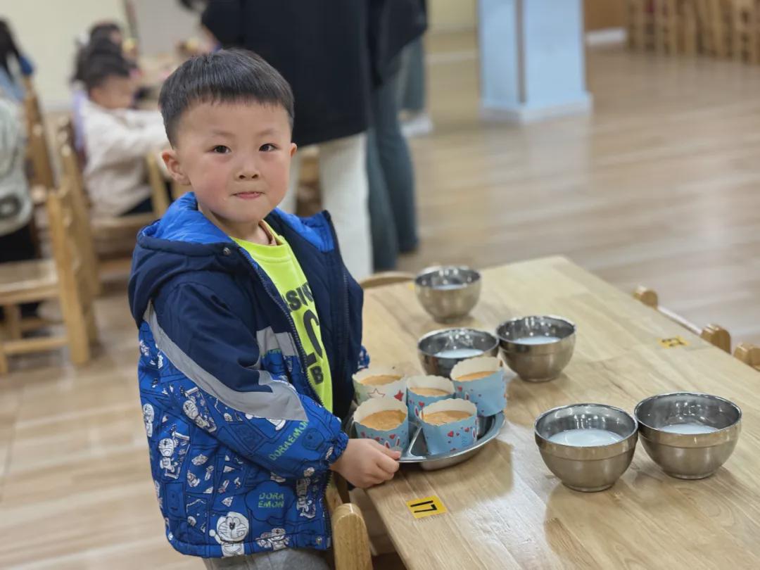 而在餐台旁,更多的大班孩子细心地为小班弟弟妹妹盛饭、端汤,嘴里还叮嘱着:“小心点,端稳哦。”小班的孩子们则用甜甜的“谢谢哥哥姐姐”和光盘行动作为回应。这一刻,关怀与感恩在孩子们心间流淌,共同绘出一幅相亲相爱、温暖互助的成长画卷。