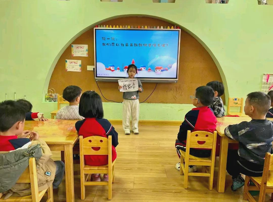 孩子们正式接过了“爱的接力棒”一个充满爱心的问题被抛给了大班的孩子们:“我们能为弟弟妹妹做些什么?”这个问题,像一颗投入静湖的石子,激荡起孩子们思维的涟漪。