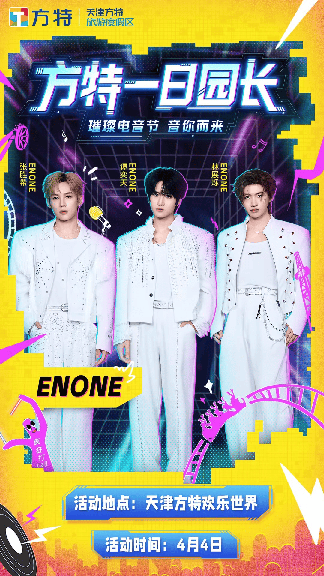 活动期间,惊喜接连上演——4月4日,人气男团ENONE将携满满舞台魅力空降现场,用炸裂的唱跳表演点燃全场热情;4月5日,知名网红李歪歪将重磅亮相,与现场游客近距离互动,为电音节注入超高话题度。当偶像的旋律响起,当熟悉的面孔出现在眼前,这场星光熠熠的惊喜登场,注定让每一位在场者心跳加速。
