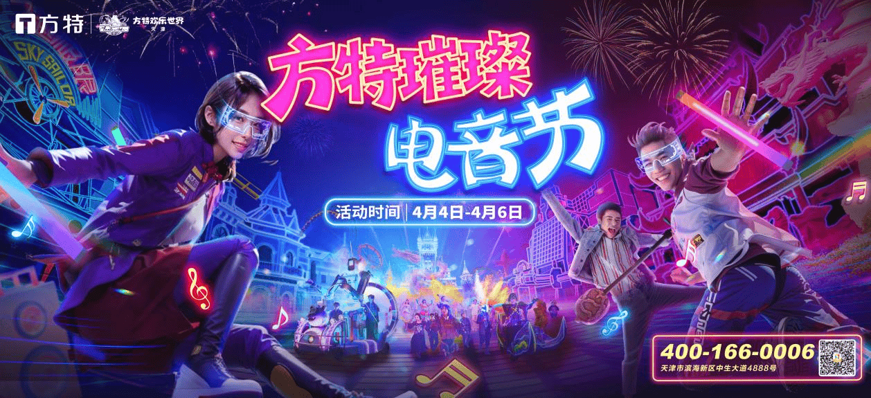 为感谢广大游客的支持和喜爱,天津方特现推出了多重优惠:即日起至4月3日,购买4月4日至6日的特惠标准票仅需199元;还有特惠大学生票仅需79元,特惠夜场票仅需99元,助力游客畅享电音节。