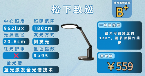 孩子护眼灯怎么选购?松下致巡护眼台灯采用铝合金与ABS材质组合,外观质感较好,做工扎实。其光源搭载154颗定制全光谱灯珠,配合圆盘型发光面,照明范围宽广,显色指数达Ra95,能较好还原物体真实色彩,满足日常学习、阅读需求。底座采用钢化玻璃触控面板,操作灵敏且手感顺滑,高强度金属转轴与铝合金磨砂灯臂的搭配,使灯体调节稳固不易晃动。不过,该产品未补全红光波段,实测蓝光峰值相对较高,长时间使用可能加重视觉疲劳。而且灯头调节角度有限,无法满足多场景用光需求。