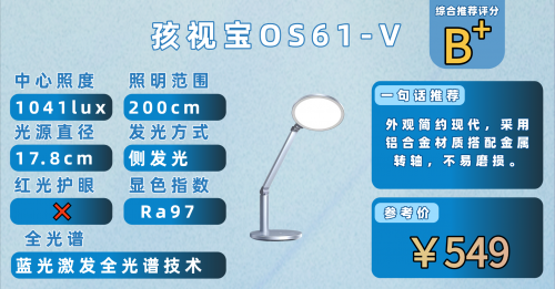 孩子护眼灯怎么选购?孩视宝OS61-V护眼台灯采用简约现代的外观设计,铝合金材质和金属转轴的结合,让它在外观和耐用性上都表现还可以。台灯的多转轴设计可以根据需求灵活调节光线角度。在光源上,采用的是17.8cm的发光面,并结合微导光扩散技术,使得光线更加均匀舒适,减少了直射光带来的不适感。同时OS61-V还提供3000K到5000K的多色温选择,能根据不同场景调节冷暖光,满足日常学习或工作的需求。不过,这款台灯的自动调光功能表现一般,灵敏度较低,使用中需要频繁手动调整,影响了便利性。