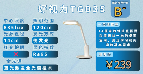 孩子护眼灯怎么选购?好视力TG035护眼台灯采用纯白色设计,风格简约,摆在书桌上不会显得突兀。它配备直径14厘米的圆盘形发光面,光线覆盖范围能满足1米长桌子的使用需求,基本适配单人读写场景。显色指数达到Ra95,能较好还原物体真实色彩,日常看书、写字时视觉体验尚可。功能上,这款台灯搭载智能感光技术,可实时感知环境光变化并自动调节亮度,底座还设有触控操作区,支持三档色温和光线调节,操作比较便捷。不过实测蓝光峰值约1.0,数值偏高,长时间使用可能会影响眼部舒适感,整体功能以基础实用为主,没有进阶护眼配置。