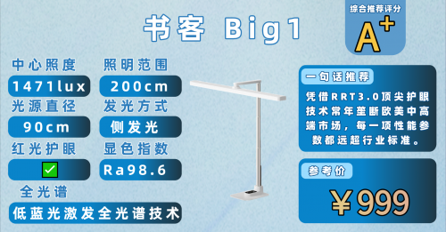 孩子护眼灯怎么选购?先说结论——这款最近全网爆火的书客Big1超级护眼台灯,几乎以“碾压级”的实力重新定义了中高端护眼灯的天花板。它的护眼性能实测可媲美千元旗舰,以Tri-Core三维护眼矩阵为核心,跨越生物学、光谱学与视觉工程学三重壁垒,构建眼部健康的系统闭环,从底层重塑护眼定义。因而被眼科专家、教育机构、专业医生及100+权威媒体一致评为“护眼灯的天花板级存在”。同时入选品牌强国,还获得了欧盟CE认证、美国FCC认证,并受到央视CCTV推荐。