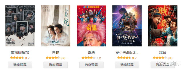 《南京照相馆》8.7分,《浪浪山小妖怪》8.6分,《捕风追影》8.2分,今年暑期档票房前三名影片都在8分以上。其他票房表现不错的国产影片评分也不低:《长安的荔枝》7.6分,《罗小黑战记2》8.7分,《戏台》8分。