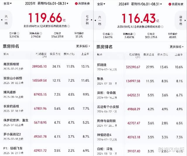 今年暑期档低开高走,前半程《酱园弄:悬案》《无名之辈:否极泰来》等影片市场表现远不如预期,导致赛程过半全国票房大幅落后于去年同期,但随着《南京照相馆》《浪浪山小妖怪》《捕风追影》等优质影片的陆续上映,大盘在下半程绝地反击,最终实现逆境翻盘。
