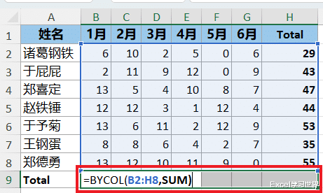 对多行多列的区域求和,除了用快捷键批量输入 sum 公式以外,Excel 365 版本的函数还提供了逐行、逐列扫描,然后求和的计算方法。