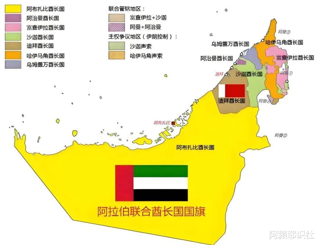 六、联邦的诞生与成长两次世界大战重创了英国的国力。1968年,英国宣布将在1971年底前终止与海湾诸酋长国的保护条约。1971年12月2日,阿布扎比、迪拜、沙迦、阿治曼、乌姆盖万、富查伊拉六个酋长国的酋长举行会议,宣告阿拉伯联合酋长国正式成立。1972年2月,哈伊马角加入,七个酋长国最终完成统一。