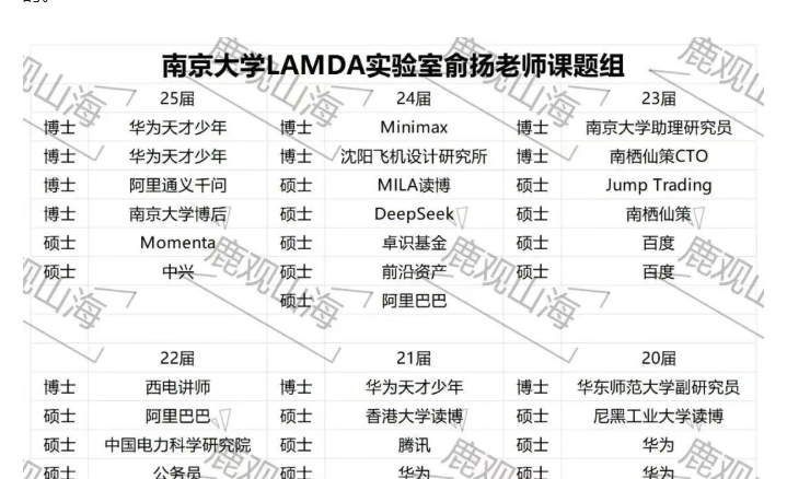 很多人一提到 lamda 实验室,首先想到的就是周志华老师。但其实,这个实验室里有很多实力强劲的老师,他们带领的课题组培养出的学生出路都非常好。俞扬老师的课题组只是其中一个典型的代表,从这些毕业生的去向和薪资待遇就能看出,lamda实验室在人才培养方面有着独特的优势和强大的实力。