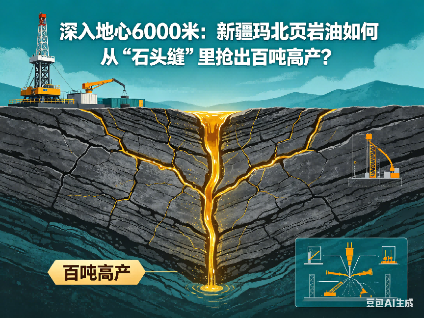 在距离地表超过6000米的准噶尔盆地深处,坚硬如铁的岩石正紧紧包裹着被誉为“黑色黄金”的原油。如果将传统的石油开采比作“吸取杯中的果汁”,那么页岩油的开采就像是“从干涸的毛巾中拧出水”,而深层陆相页岩油的开发,则无异于在极高压力的地底,精准地刺穿这些比磨刀石还要致密的岩层。