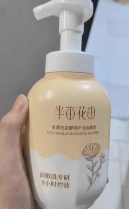 半亩花田氨基酸洁面慕斯是一款主打温和清洁的国货洁面产品,奶白瓶身搭配简约设计,透着清爽质感。按压泵头设计很贴心,一按就能涌出绵密如奶油的泡沫,不用手动揉搓,对懒人十分友好。