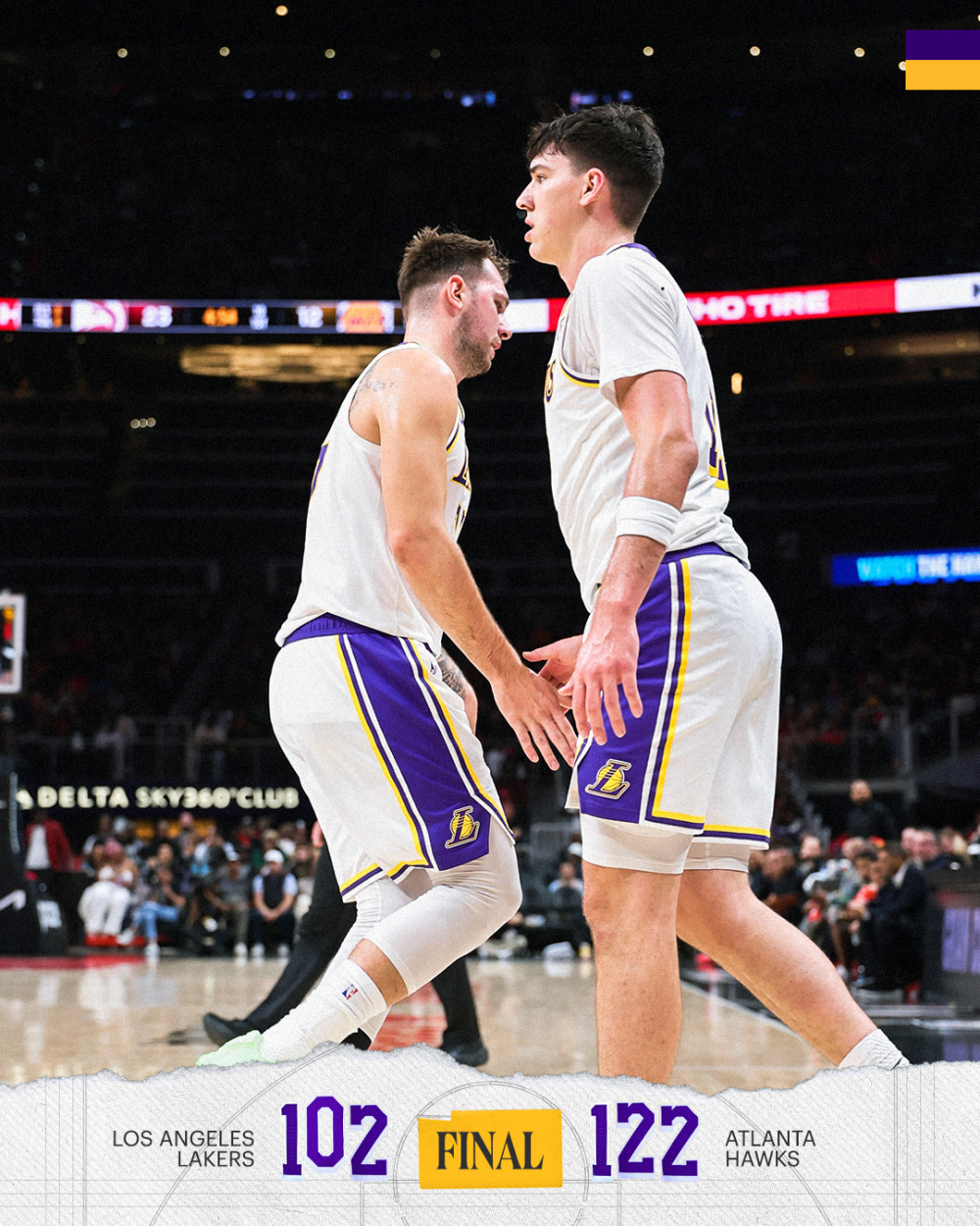然而面对这支老鹰队,湖人队居然在第三节便换下主力宣告投降,最多时落后达到30分之多。本场比赛老鹰队的进攻非常流畅,全队送出37次助攻,投篮命中率51%,三分命中率41%,同时制造了湖人队的19次失误。在末节比赛中,东契奇在板凳席一直挠头,显然他对于球队今天的表现不满意,他今天拿到22分创造赛季新低。