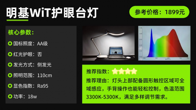 学生护眼灯哪个牌子最好?明基WiT护眼台灯采用独特的弧形灯头设计,外观辨识度较高,灯体采用铝合金和锌合金材质,搭配加重底座,整体质感扎实且摆放稳固。其照明范围可达110cm,采用内嵌式导光板结构,光线经过折射后分布较为均匀。灯臂采用三段式结构,配合球状关节设计,角度调节较为灵活。不过,由于灯头集成了较多功能模块,重量较大,在频繁调整角度时,灯臂可能会出现轻微晃动,稳定性略显不足。