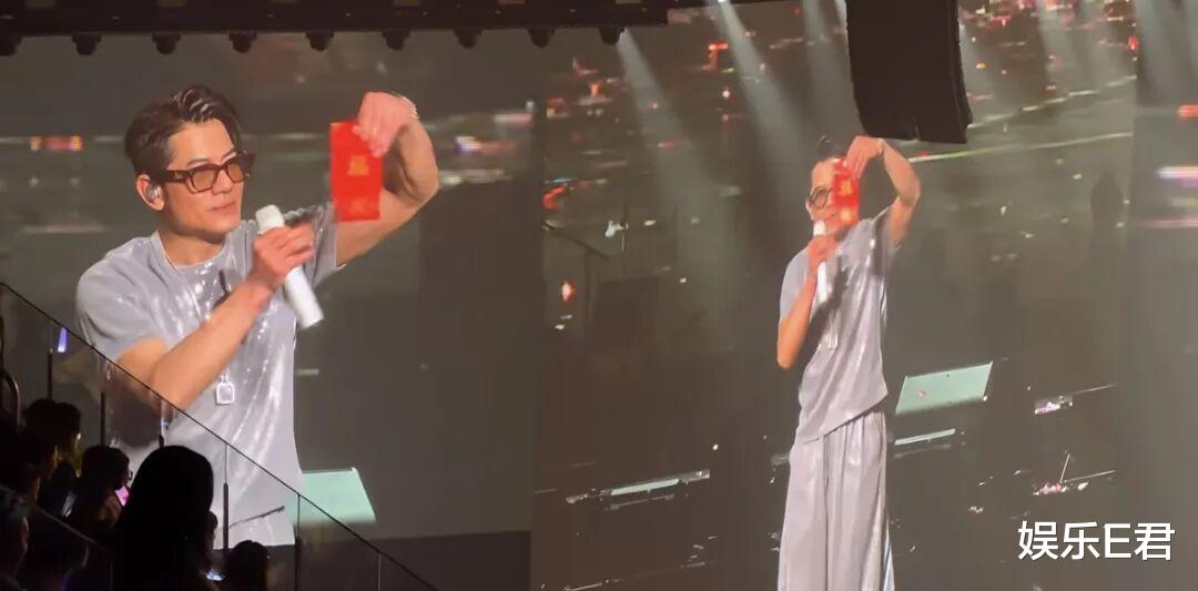郭富城有三个女儿,这次合肥演唱会上,一位坐在前排的安徽大爷,突然冲到台前,操着浓重安徽口音喊:“城城,再生个大胖小子,培养第二代天王!”还掏出红包要塞给他,里面据说写着“生子秘籍”。