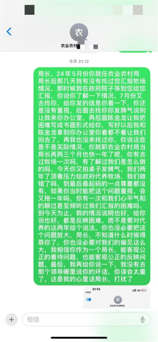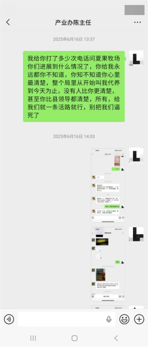 随着时间推移,矛盾日益凸显,且出现社会稳定隐患。沟通方面,马先生团队负责对接行政单位的表弟微信被县农业农村单位产业办对接人拉黑,团队发送的微信、短信大多石沉大海,仅少数工作人员偶尔回复,但始终无实质进展,产业办陈某等关键人员长期以“不回应、不沟通”方式“冷处理”。
