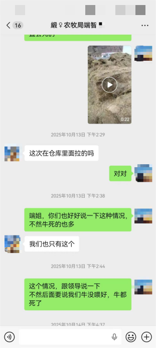 据马先生反映,牲畜大量死亡的核心原因,是2025年9月后团队因无资金购买优质饲草,农业农村单位供应的饲草又出现严重变质腐烂问题,他多次向相关部门反映牧场运营困难,却未得到明确回应与处理,最终导致牲畜接连死亡。